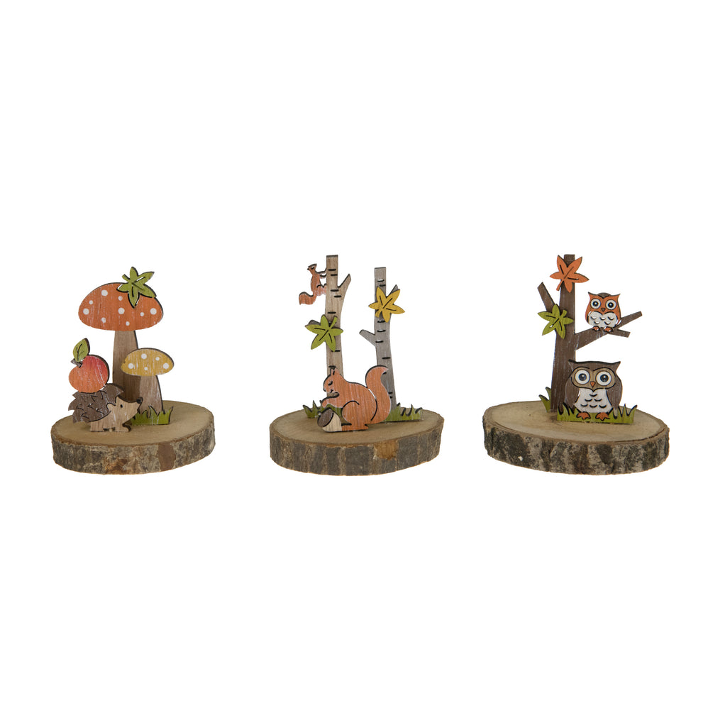 Autumn scene on foot wood Ø5.5x9cm 1pc - Multi mixed
