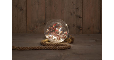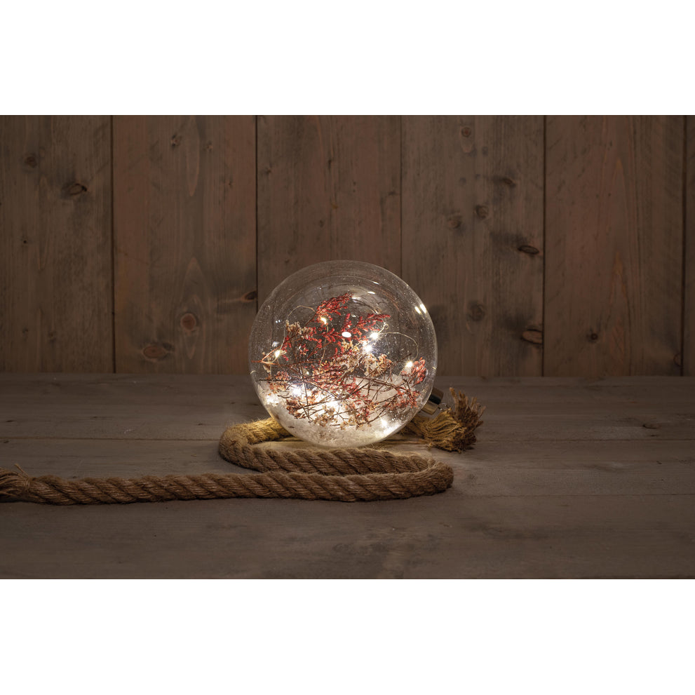B.O. BAL GLAS DROOGBLOEMEN IN SNEEUW 18CM AAN TOUW / 15LED WARM WIT - 2XAA