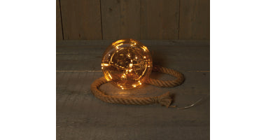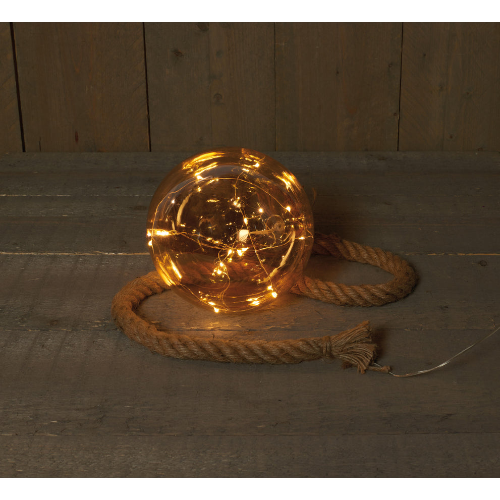 B.O. BAL GLAS GOUD 18CM AAN 1M TOUW / 15LED WARM WIT 2XAA