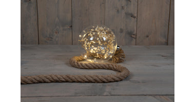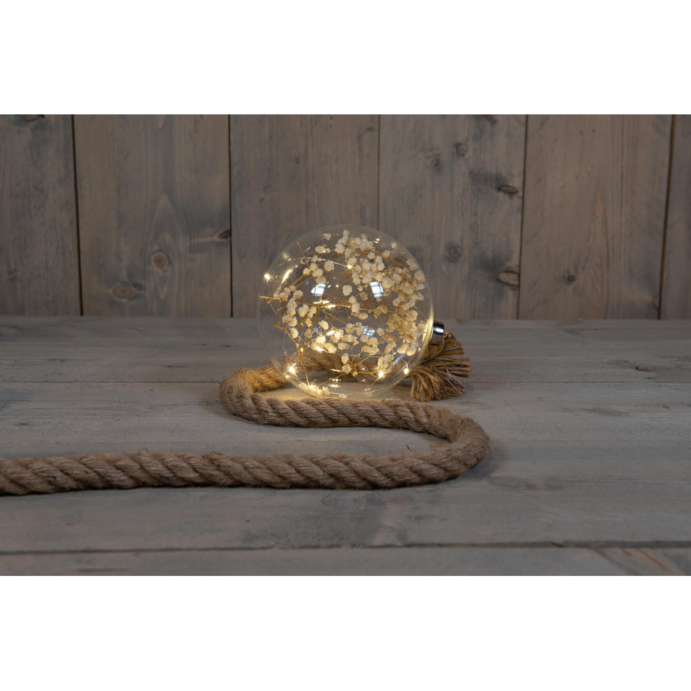 B.O. BAL GLAS MET DROOGBLOEM WIT 15CM AAN 1M TOUW / 10LED WA