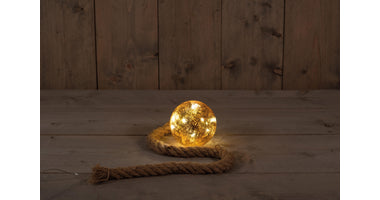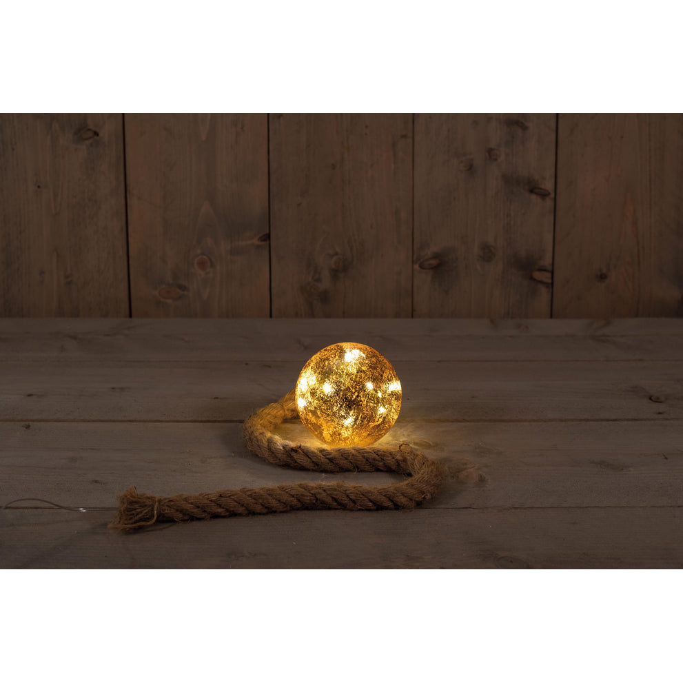 B.O. BAL GLAS MET GOUD FOLIE 10CM AAN TOUW / 8LED WARM WIT - 2XAA