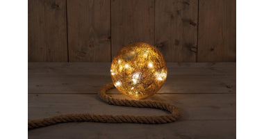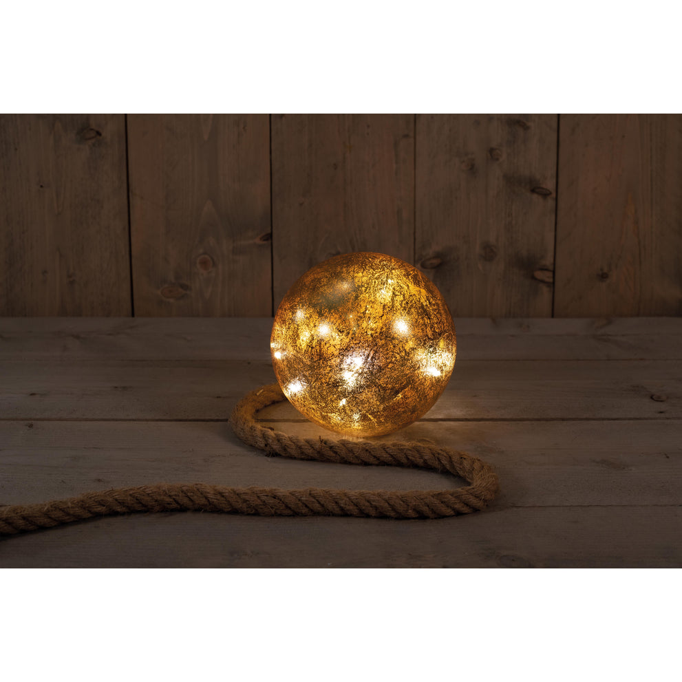 B.O. BAL GLAS MET GOUD FOLIE 18CM AAN TOUW / 15LED WARM WIT - 2XAA