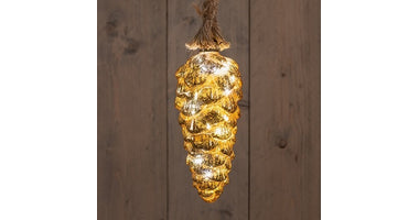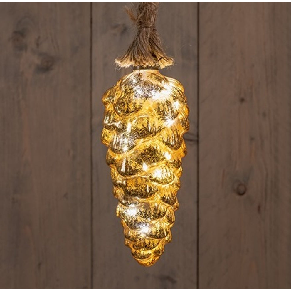B.O. DENNENAPPEL GLAS GOUD FOLIE 20CM AAN 60CM TOUW / 15LED WARM WIT - 2XAA