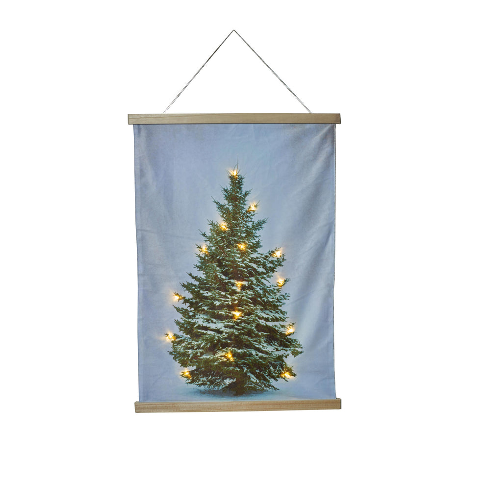 B.O. FLUWEEL DOEK KERSTBOOM 52X70CM MET 15LED WERKT OP 2xAA