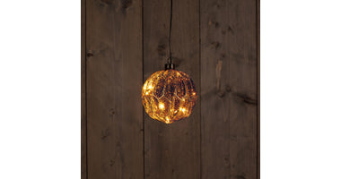 B.O. GLAS BAL ANTIEK GOUD 12CM / 10LED CLASSIC WARM - 2XAAA