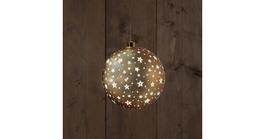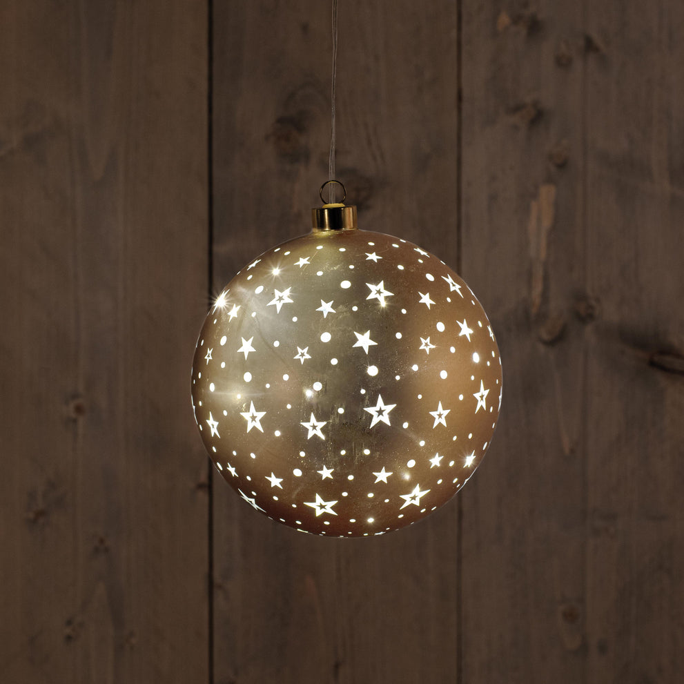 B.O. GLAS BAL MAT GOUD MET STERREN 15CM /LED WARM WIT - 2XAAA