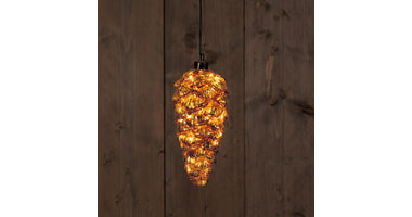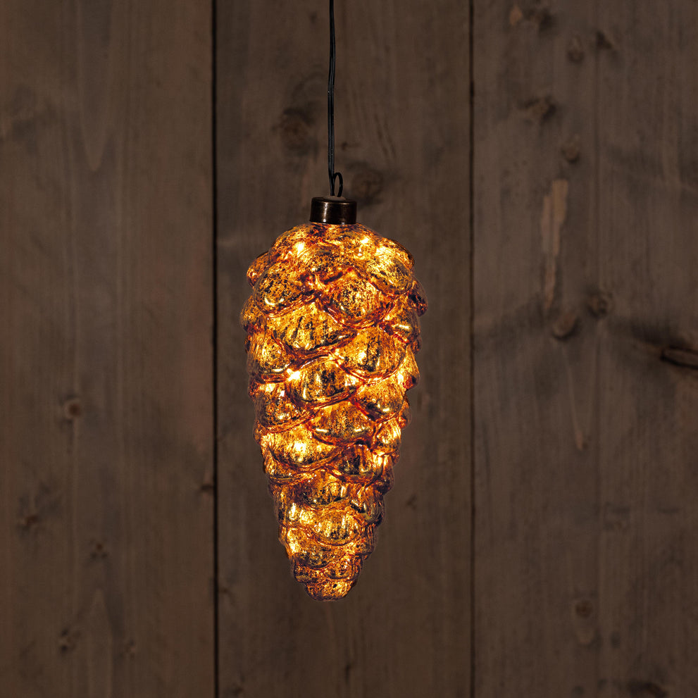 B.O. GLAS DENNEAPPEL ANTIEK GOUD 20CM /15 LED CLASSIC WARM - 2XAAA