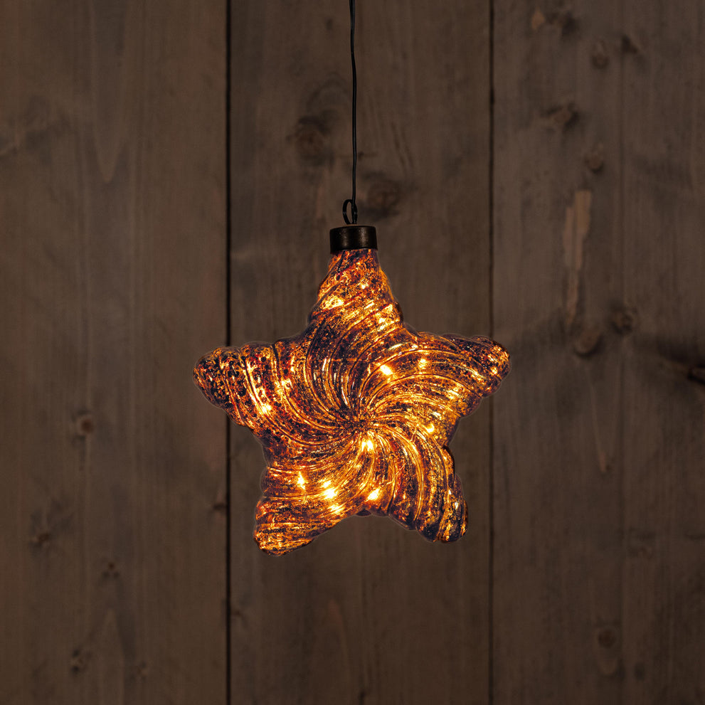 B.O. GLAS STER ANTIEK GOUD 15CM /10LED CLASSIC WARM - 2XAAA
