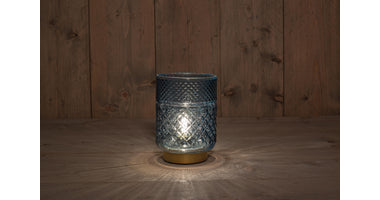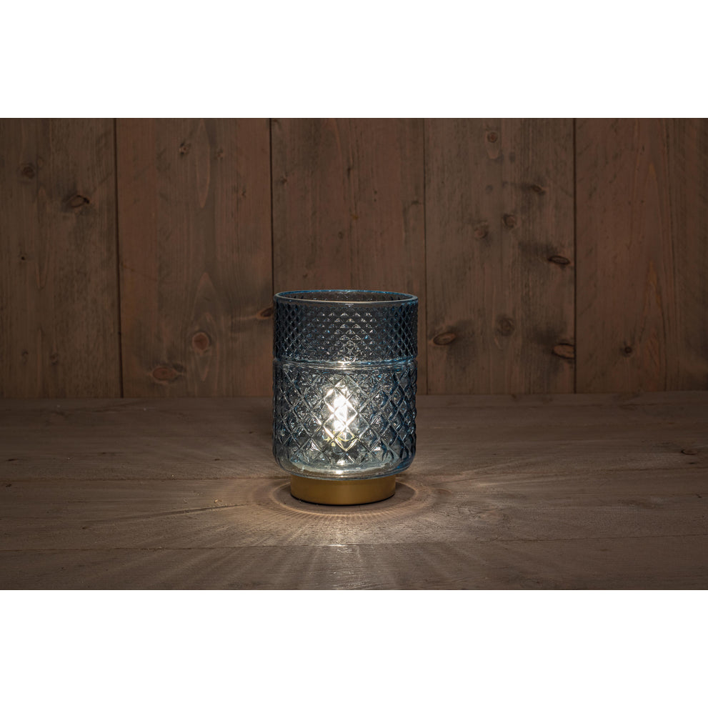B.O. GLAZEN LAMP BLAUW MET GOUDEN VOET 12X17,5CM - 2XAAA
