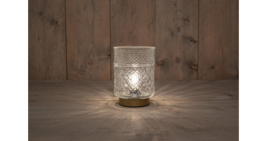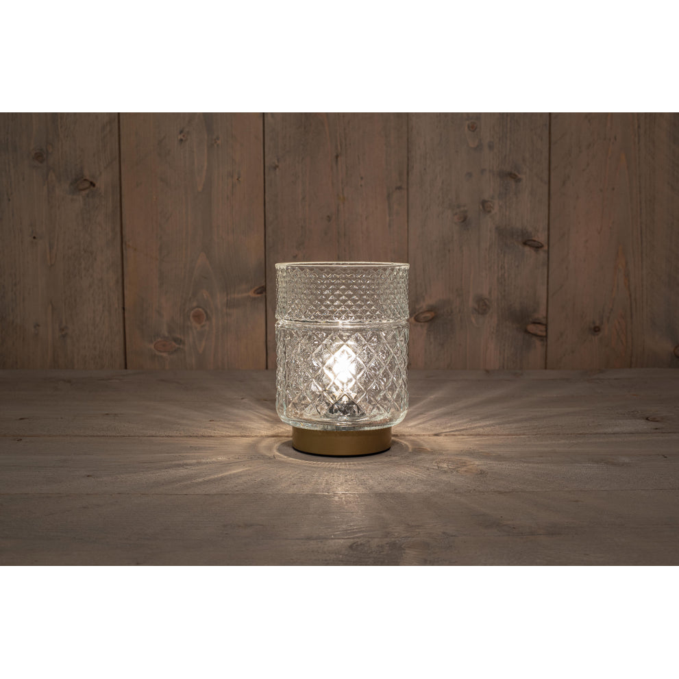 B.O. GLAZEN LAMP HELDER MET GOUDEN VOET 12X17,5CM - 2XAAA