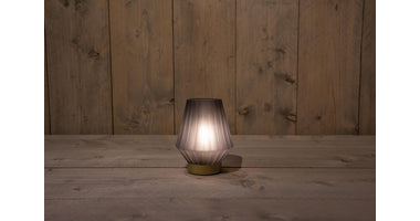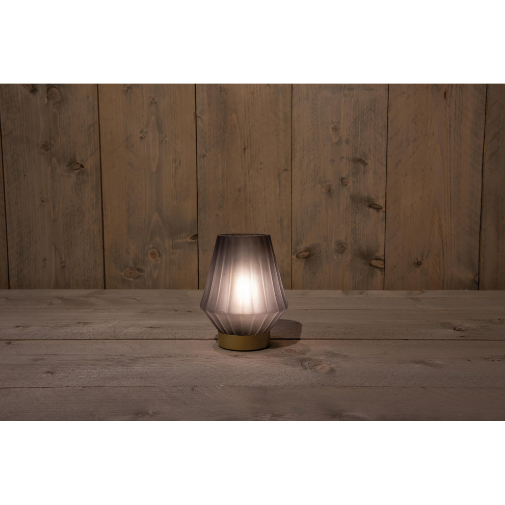B.O. GLAZEN LAMP MAT GRIJS MET GOUDEN VOET 12X17CM 2XAAA