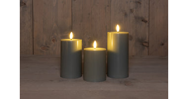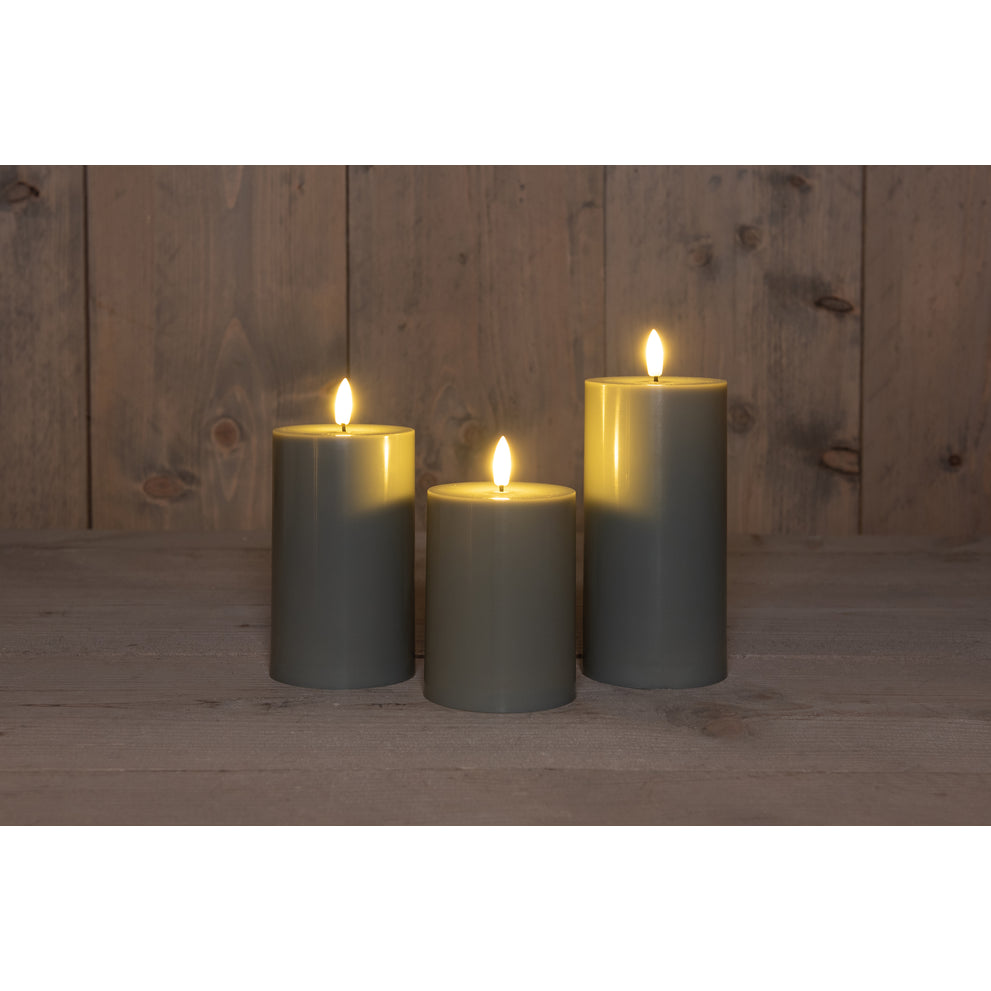 B.O.T. 3ST OUTDOOR KAARS 7,5X10/12,5/15CM OLIJFGROEN 3D LONT AAN/UIT/ 6U TIMER 3X3AAA