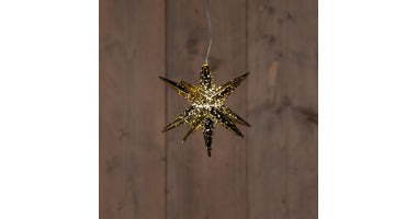 B.O.T. GOLD 3D STAR 12CM / 1LED WARM WHITE / 1,5M TRANSPARENT