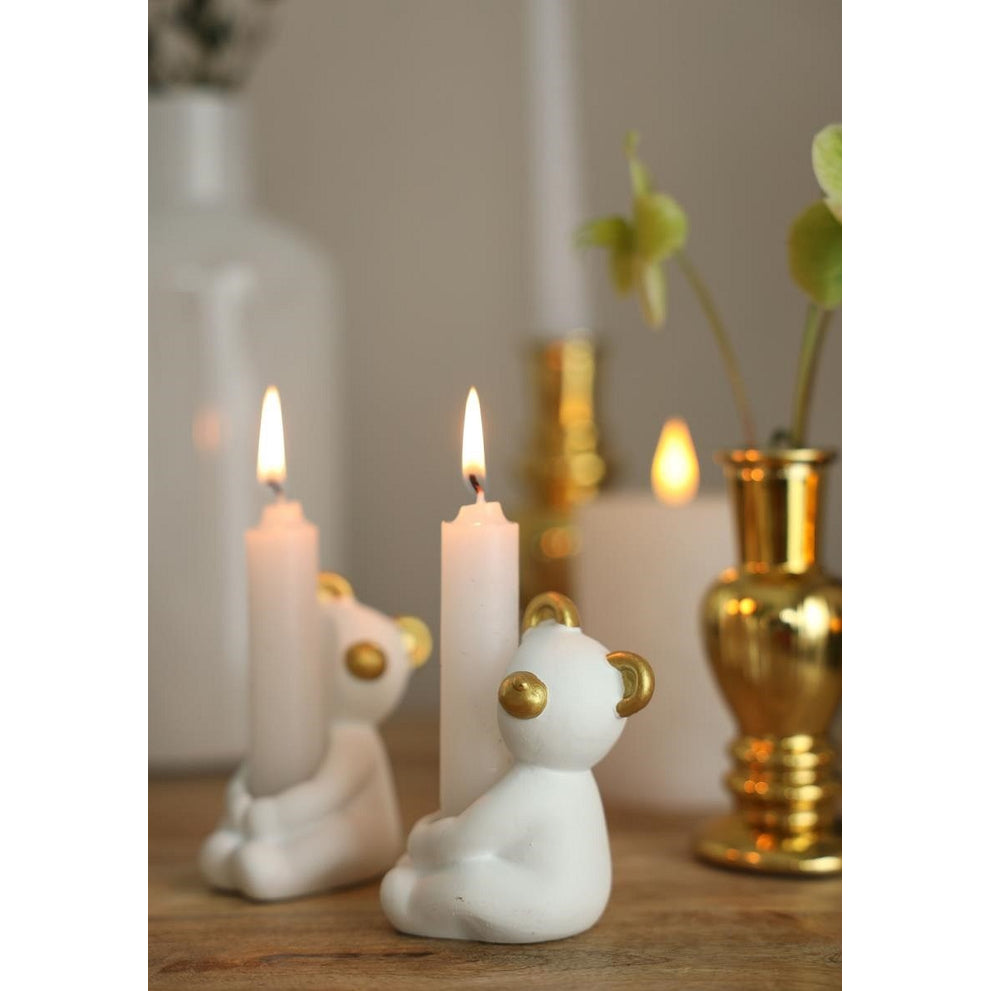 Bear candle holder L.6xW.5xH.8 cm white gold