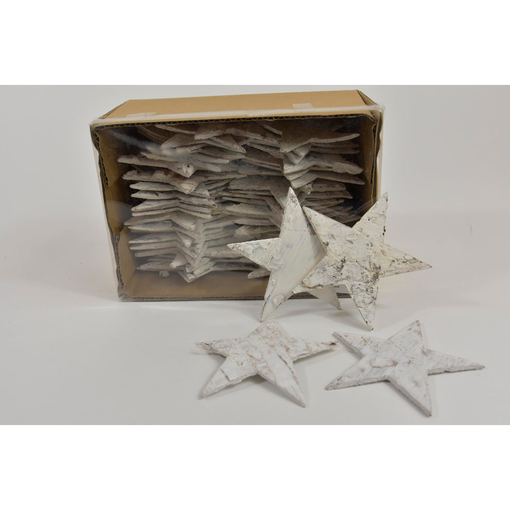 Berkenschors sterren white-wash 9 cm 50 stuks