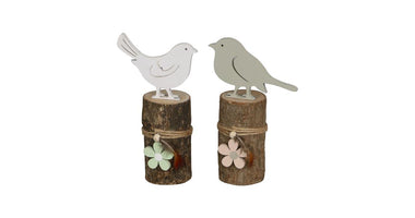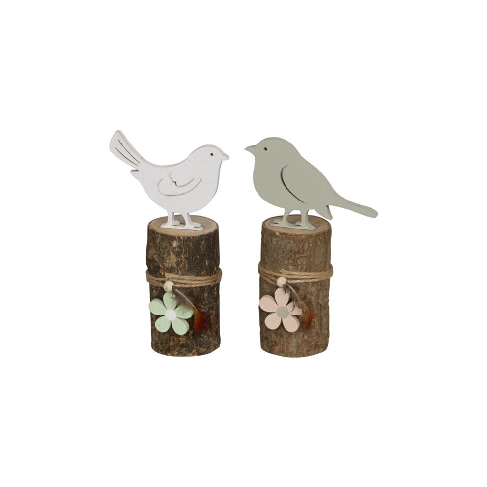 Bird on wooden stem 11x6x20cm 1pc 2 assorted White/Taupe