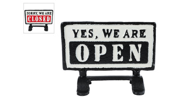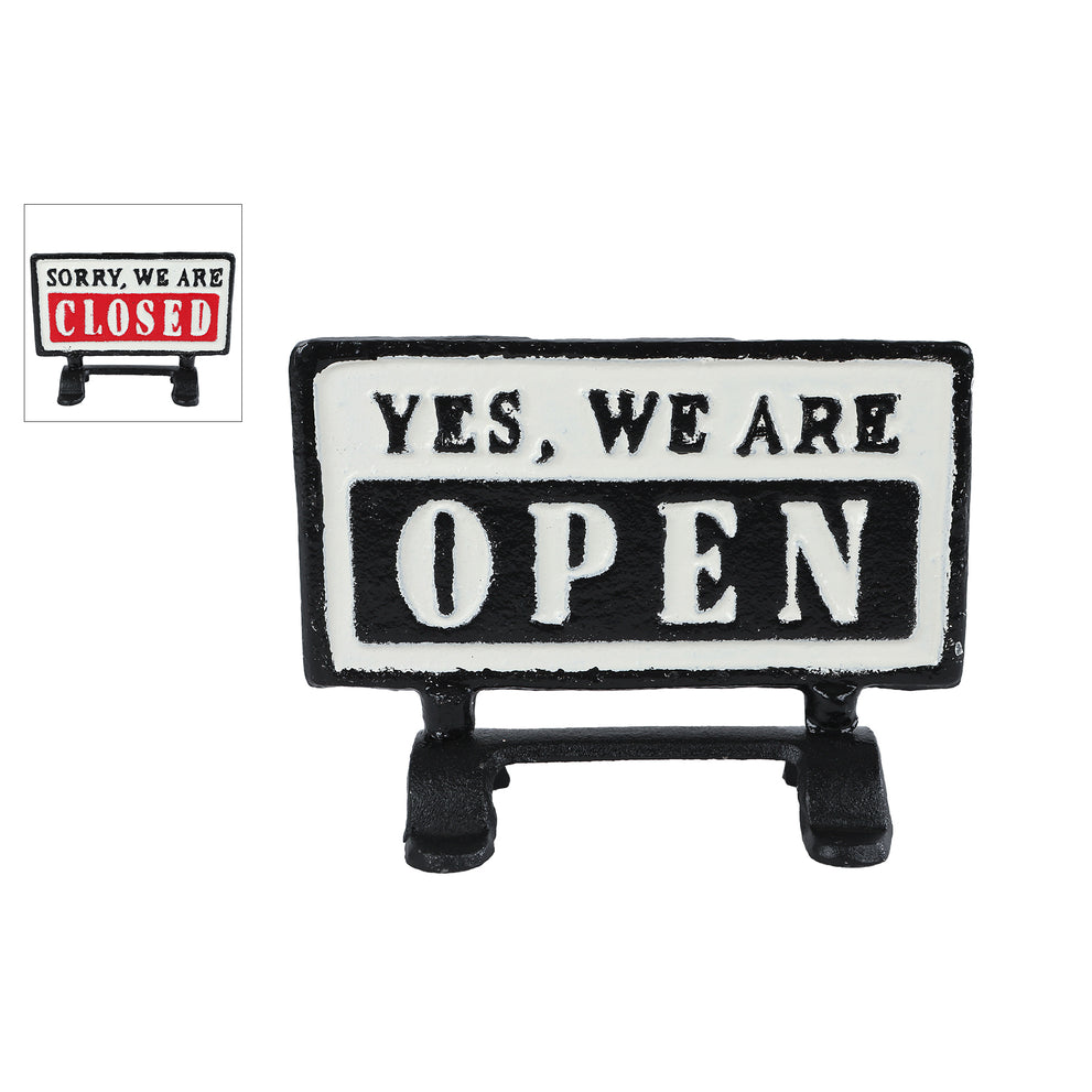 Bordje "Open/closed" m/houder zwart/rood metaal 16x7x11,5cm