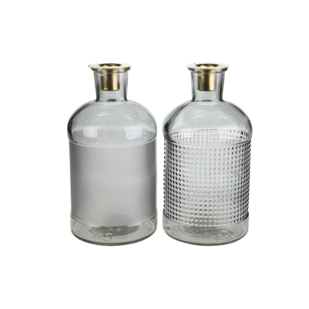 Bottle with candle holder glass Ø10.3x20.5cm 1pc mixed Grey