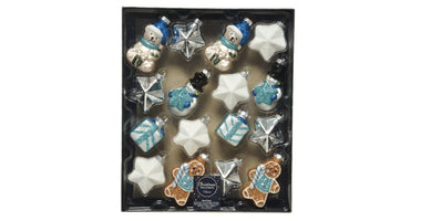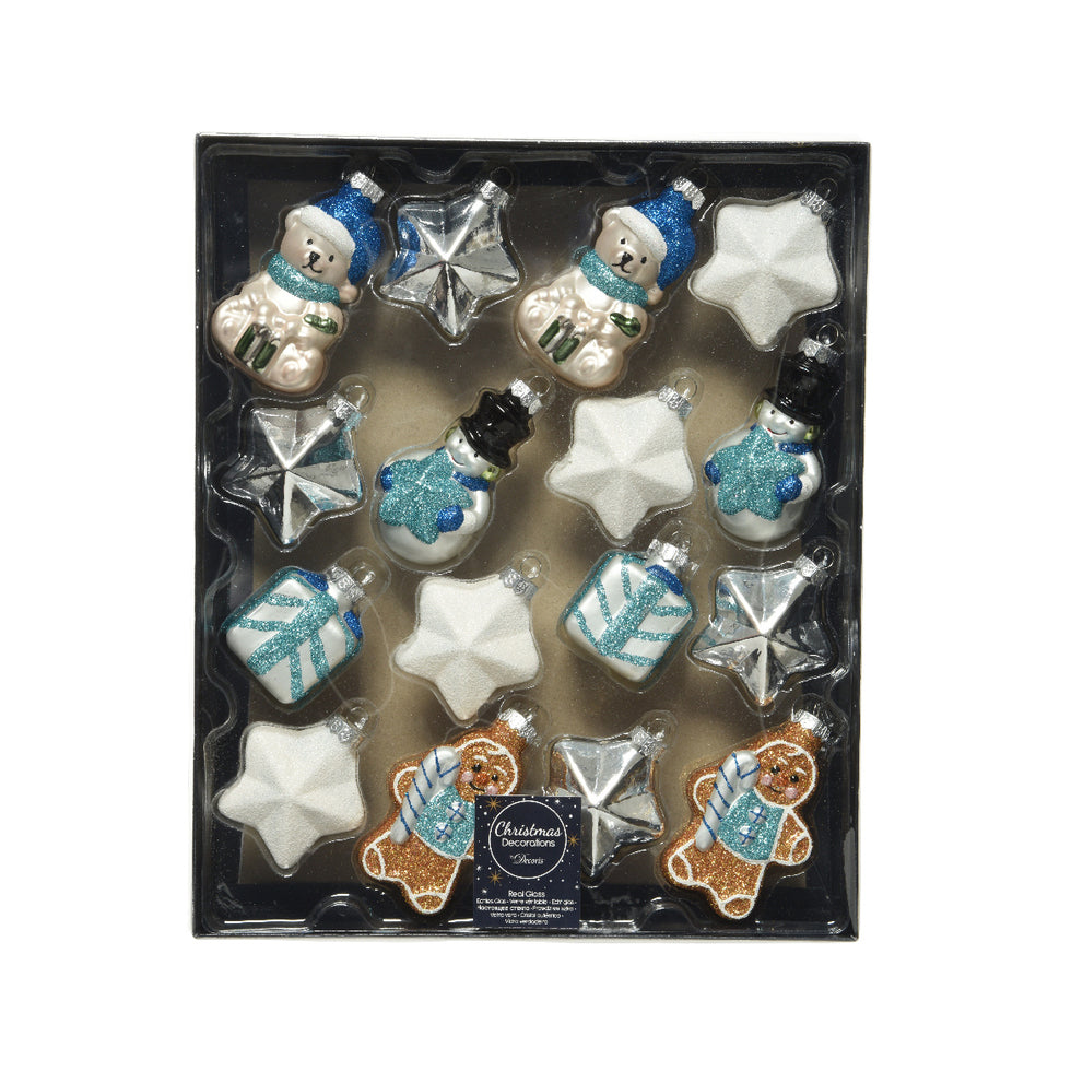Box a 16 Figurine glass mix blue L19 W18.50 H5.50cm