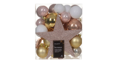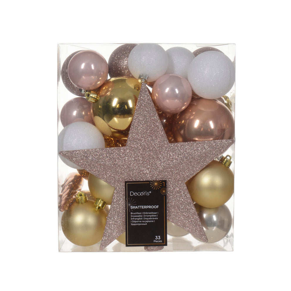 Box a 33 Kerstbal kunststof mix assortie pink D.8cm