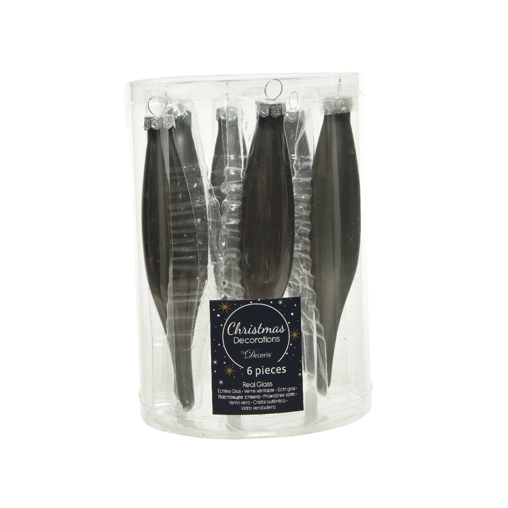 Box a 6 Icicle glass enamel,matt mix warm grey dia3 H15 cm
