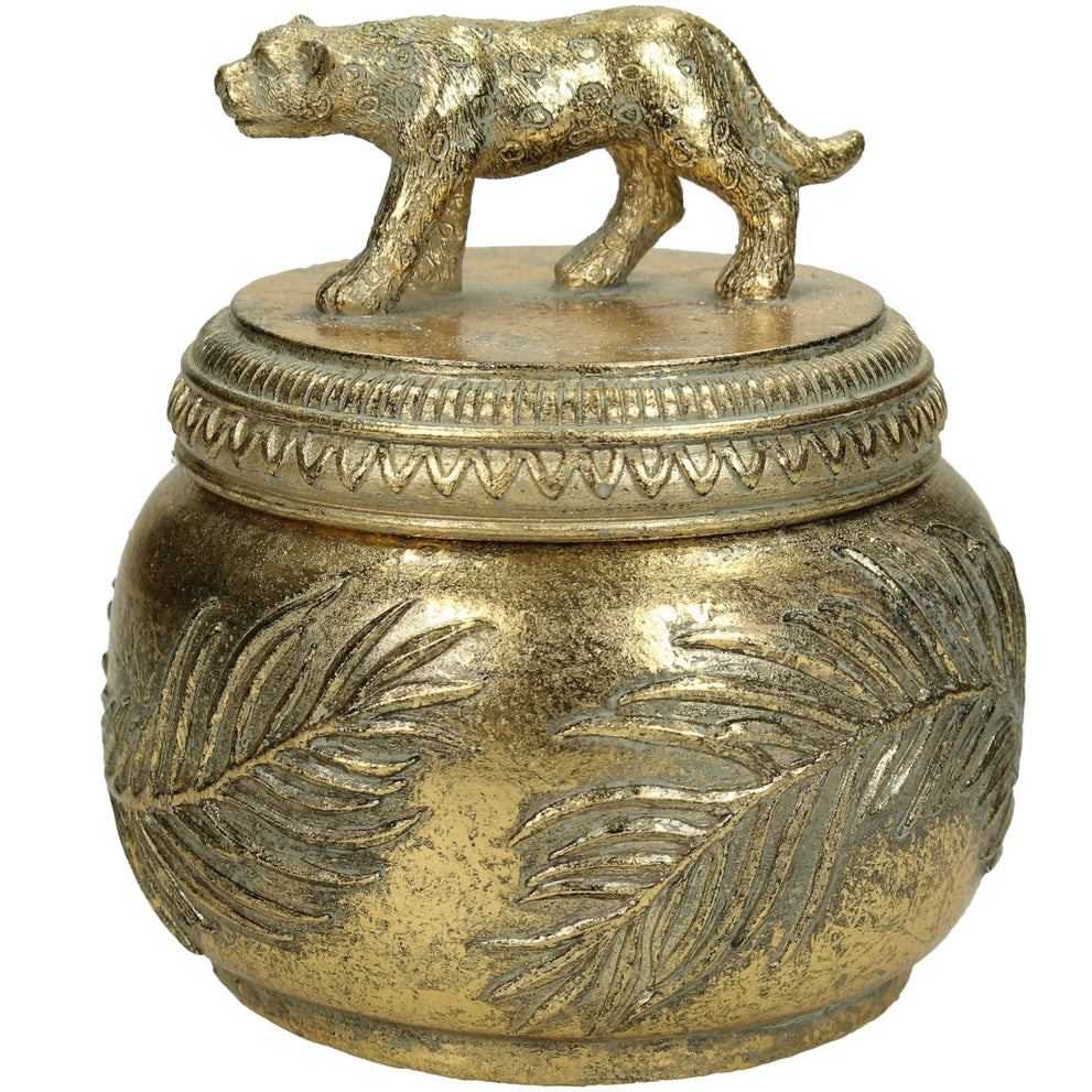 Box Leopard Polyresin Gold 11.5x11.5x12cm