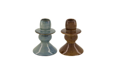 Candle holder ceramic Ø8x11cm Mixed Blue/Brown