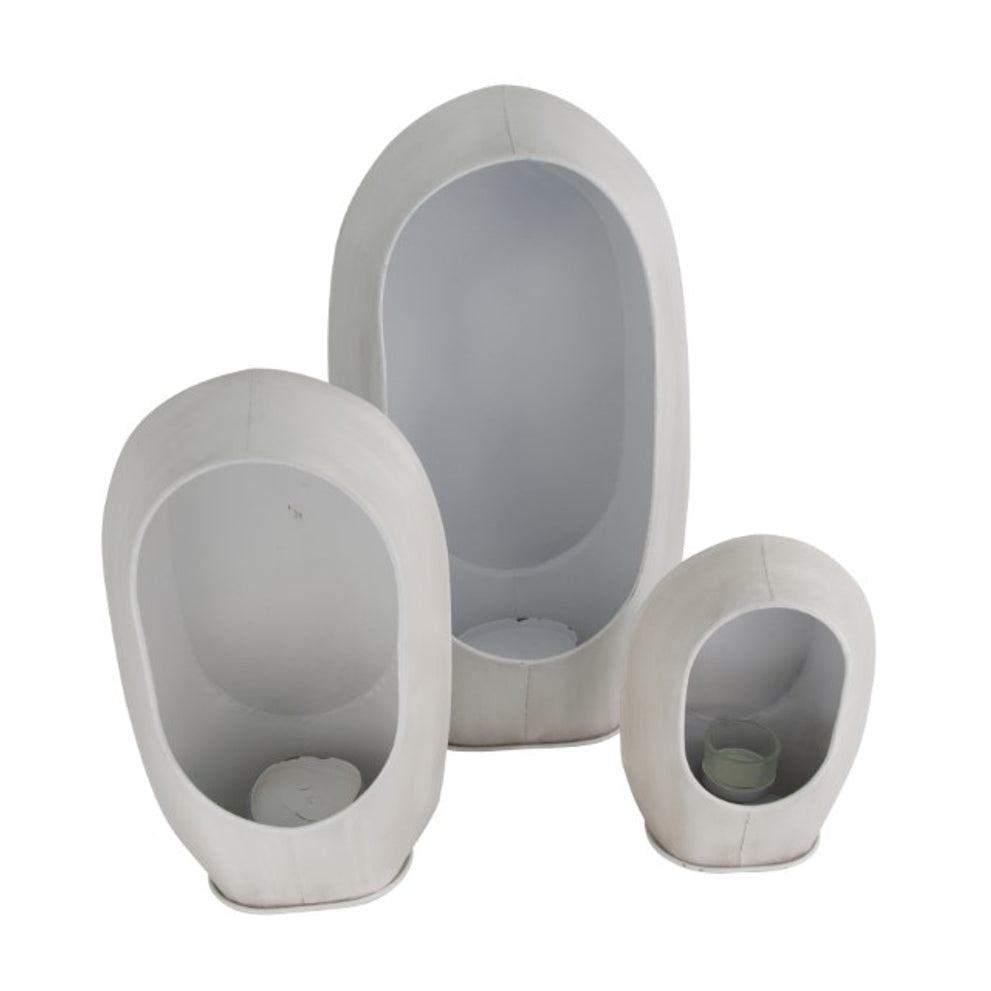 Candle holder metal 28x16.5x50cm S/3 White/Grey-wash