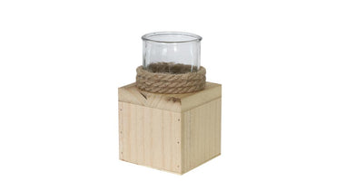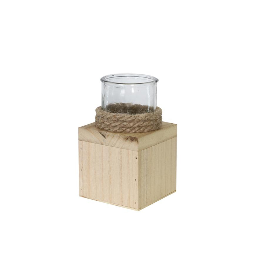 Candle holder on wooden base 10x10x18cm with glass Natural