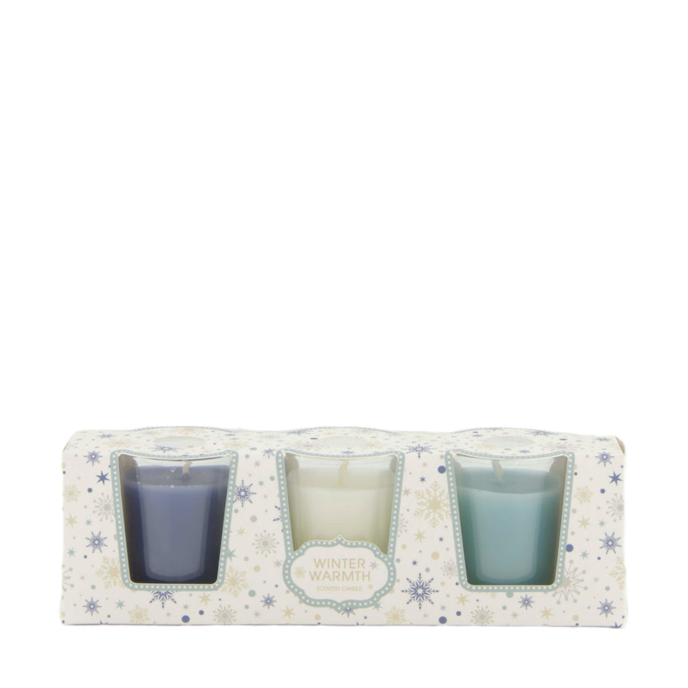 Candle sandalwood scent wax with glass 21x5x6cm 3pc White