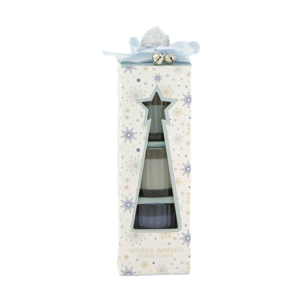 Candle sandalwood scent wax with glass 5.5x5.5x17cm 3pc White