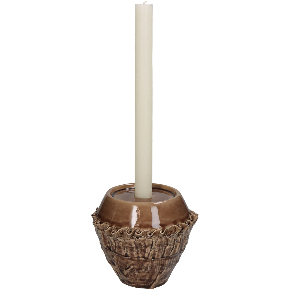 Candle Stick Bark Fine Earthenware Brown 14.5x14.5x12.5cm