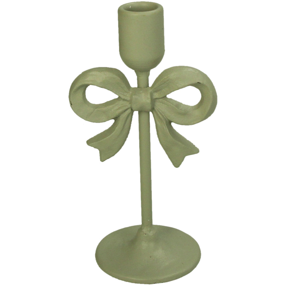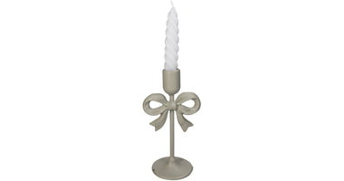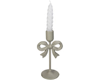 Candle Stick Bow Metal Ivory 10.5x8.5x20.5cm