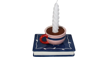 Candle Stick Cup on Book Dolomite Multi 15.3x11.7x7.6cm