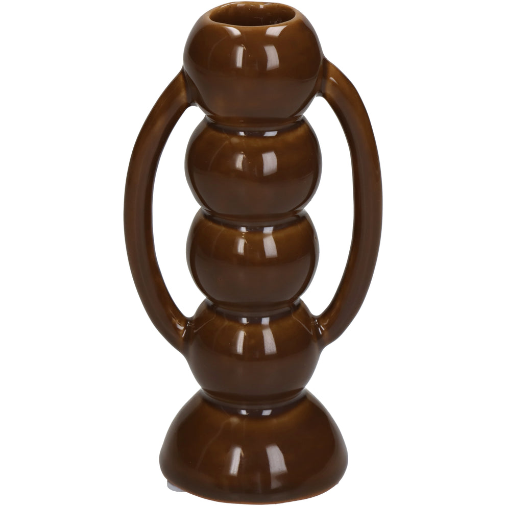 Candle Stick Fine Earthenware Brown 7.4x5.5x13.7cm