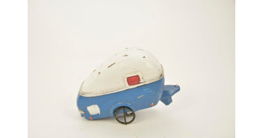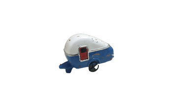 Caravan wit/blauw 12x5x6 cm polyester