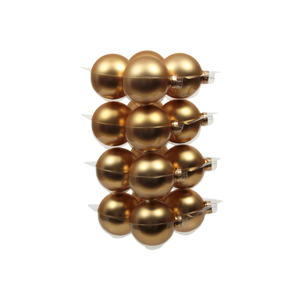 cb. 16 glassballs/cap bright gold mat 80 mm