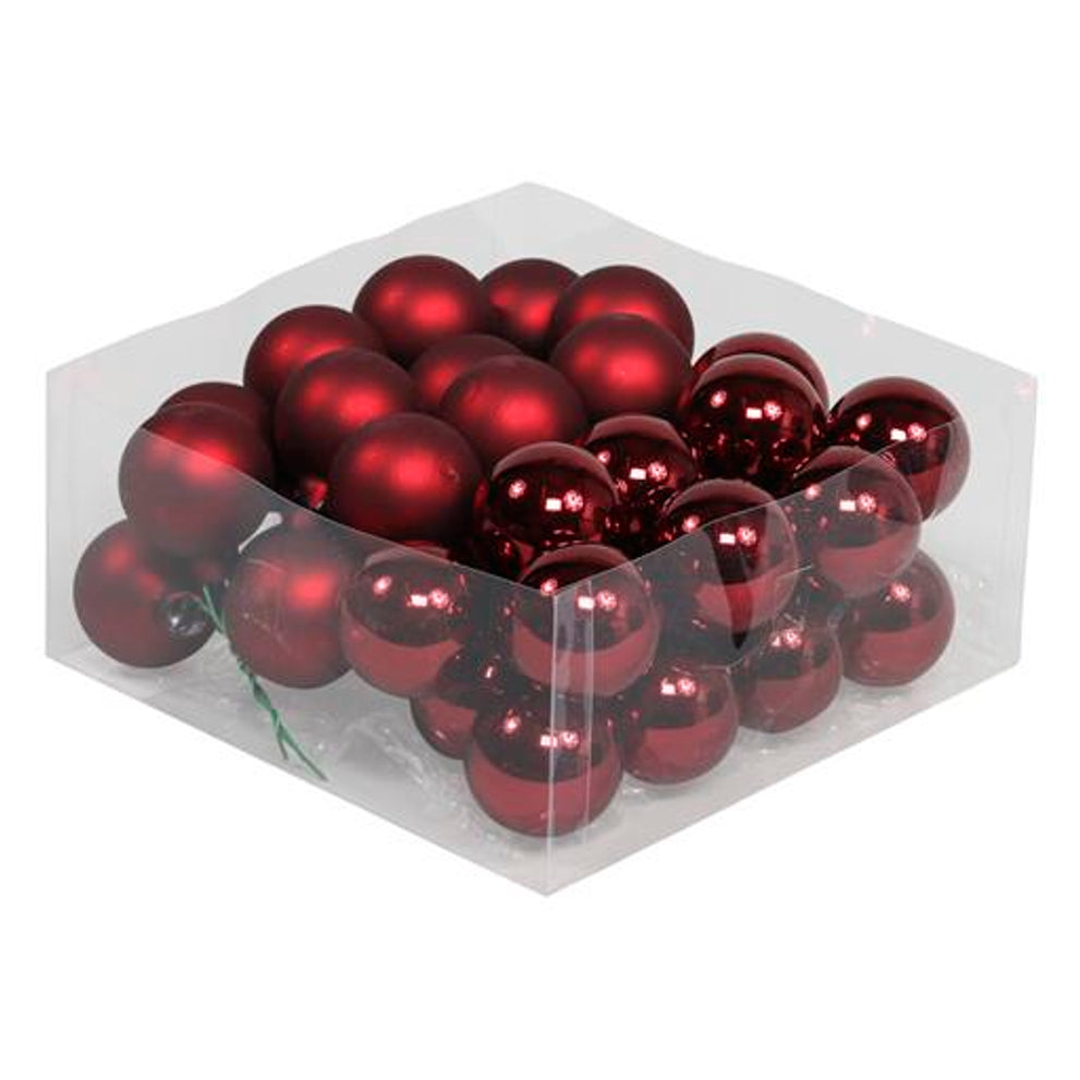 cb. 36 glasballen/wire dark red combi 40mm