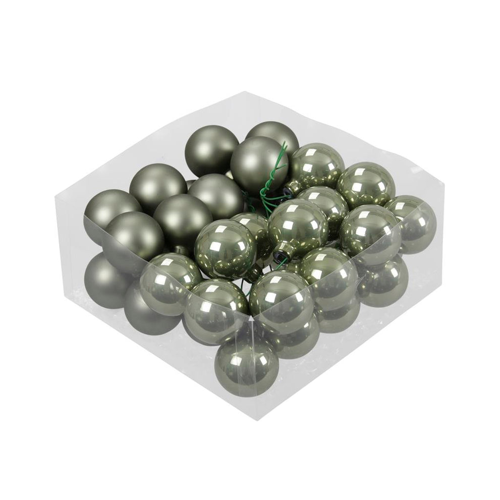 cb. 36 glassballs/wire granite green 40 mm