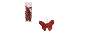 Clip vlinder d.rood 6 stuks - l10xb7xh2,5cm
