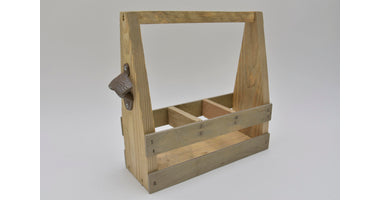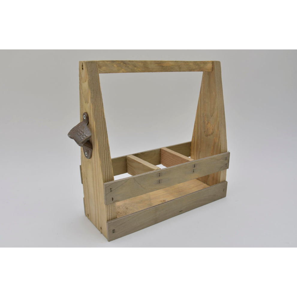 Crate w. handle and opener - 3 bottles 27x10x27cm Antique