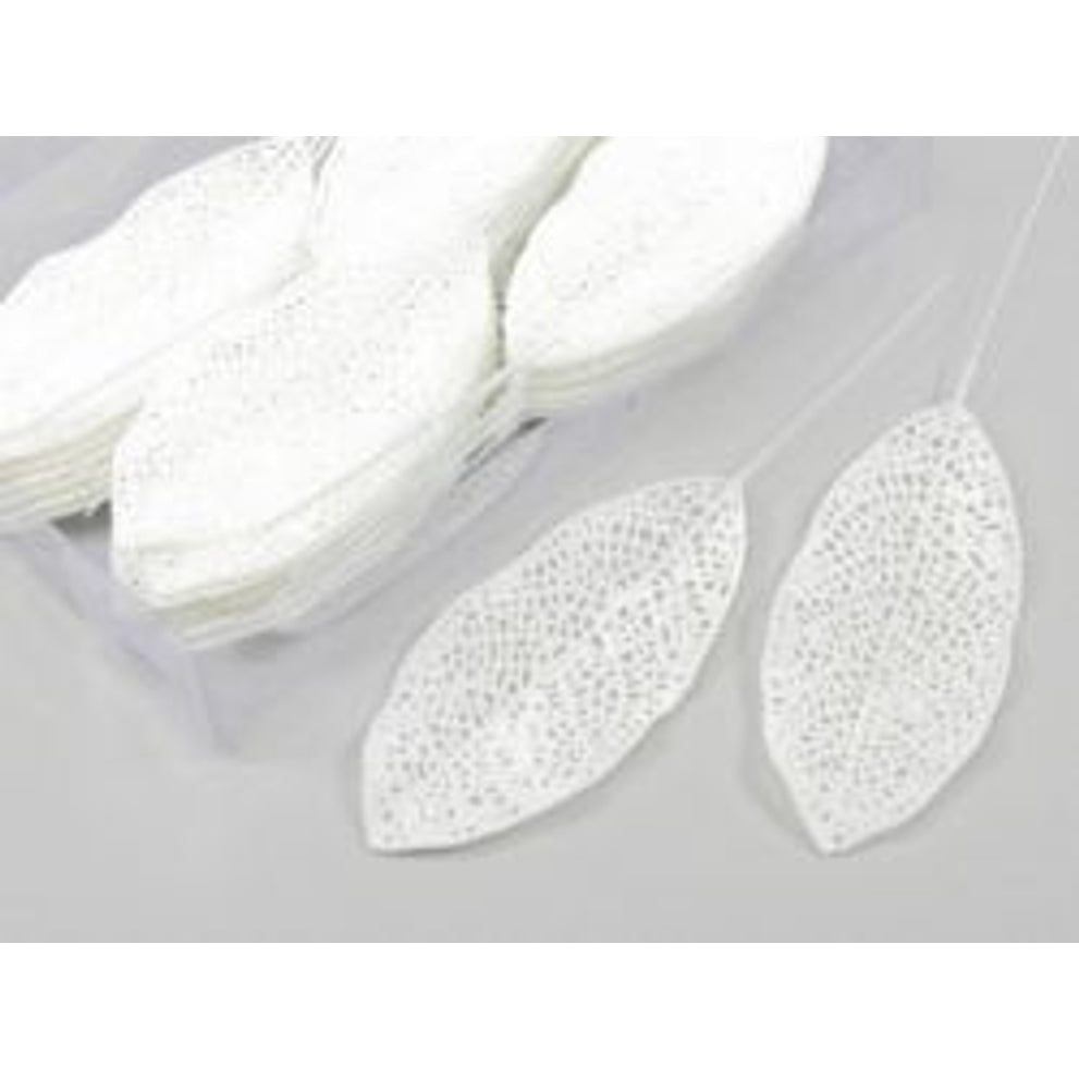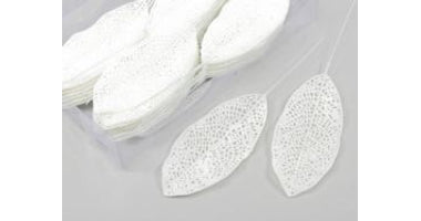 Decoratie bladeren op steker 36 stuks 6x14cm wit