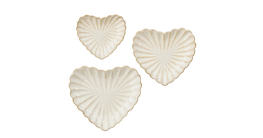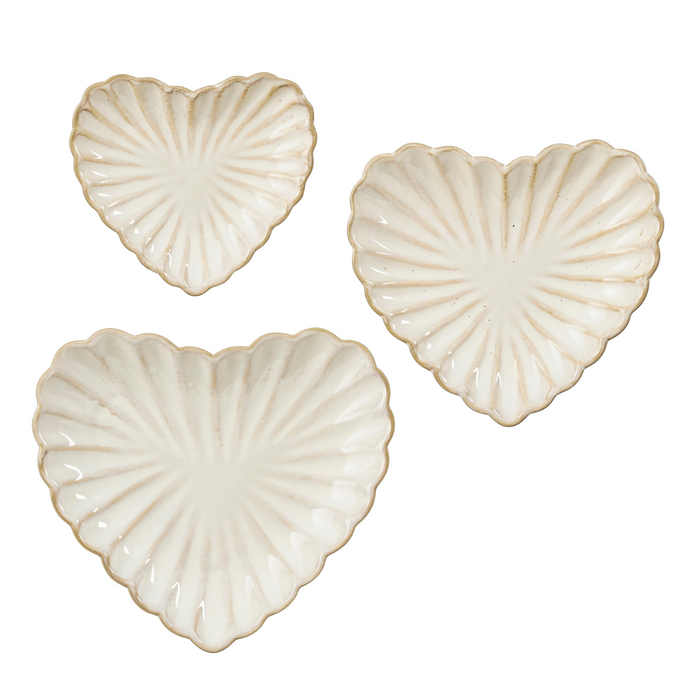 Decoratie bord hart creme set van 3 - l19xb17,5xh3cm