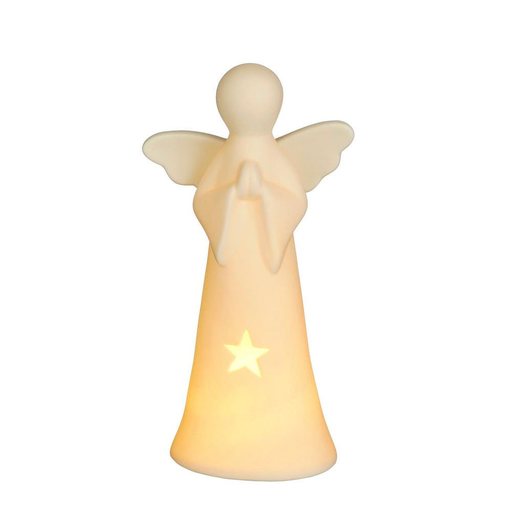 Decoratie engel wit led battery operated - l11xb6,5xh20,5cm