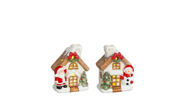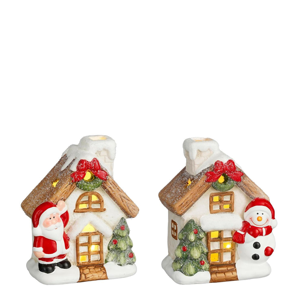 Decoratie huis kerstman sneeuwman l.bruin 2 assorti led battery operated - l13xb8xh15,5cm