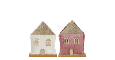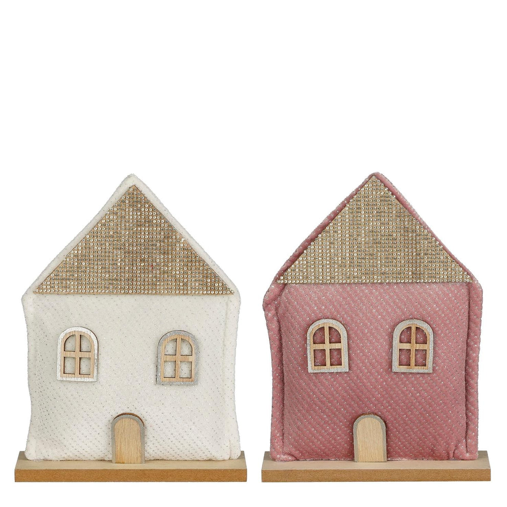 Decoratie huis wit roze 2 assorti - l16xb5xh20,5cm