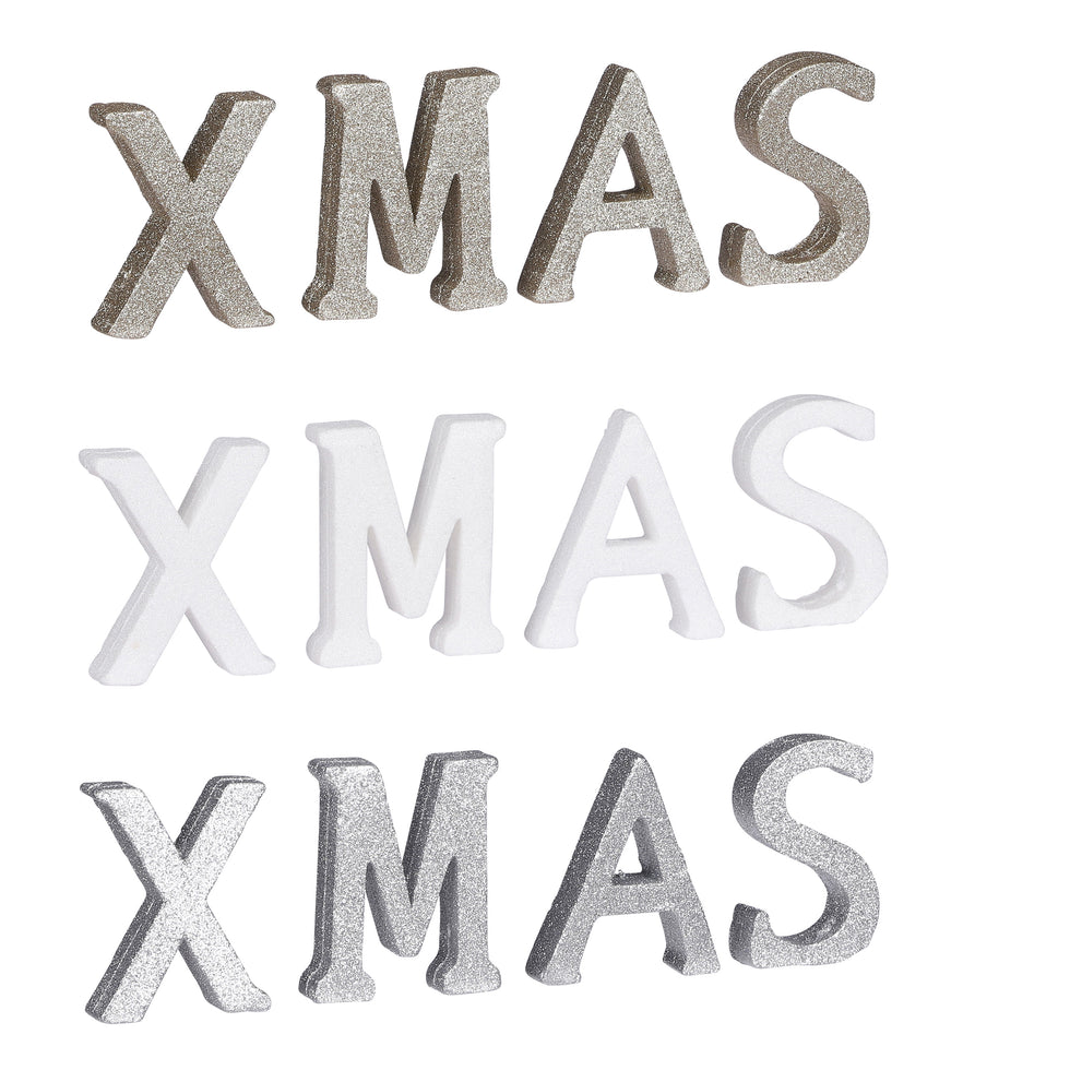 Decoratie letters XMAS wit zilver goud assorti - l32xb10xh2cm - foam