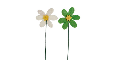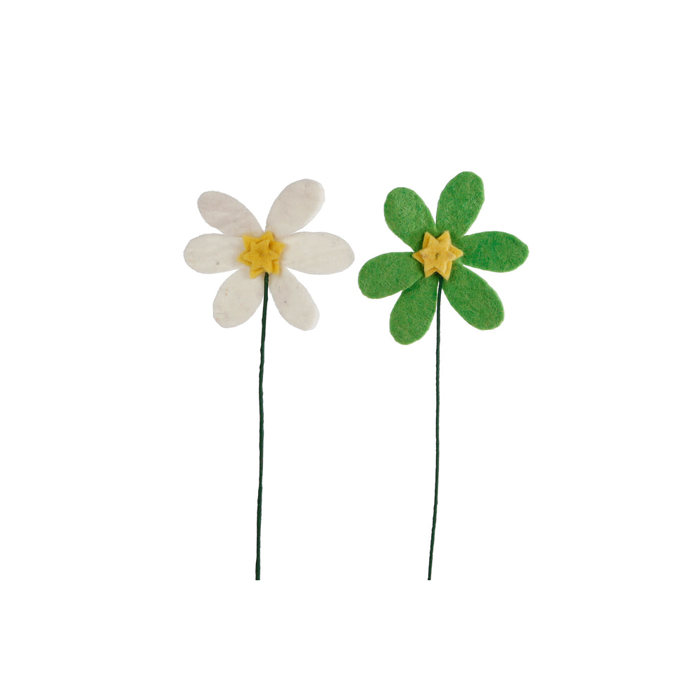 Decoratiebloem "Flower" creme/groen 2 assortie vilt 11x11x33cm
