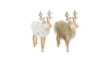 Deer wood with fabric 12x4.5x13.5cm 2 Grey/Brown mix