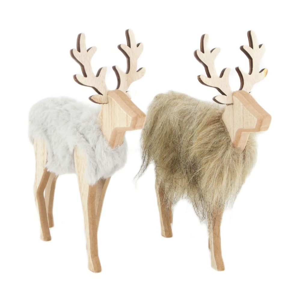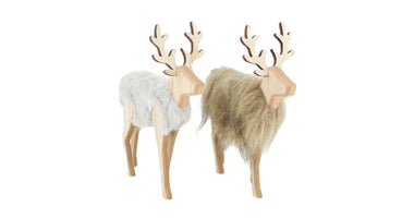 Deer wood with fabric 16x6x18cm 2 Grey/Brown mix